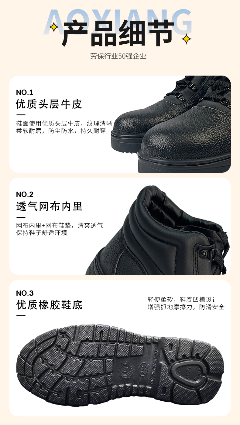 1. 鞋幫高度:冬季勞保鞋多以高幫或中幫為主,可以較好地包裹住腳踝,提升腳踝溫度,同時防水防風防寒。